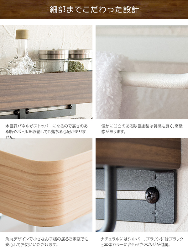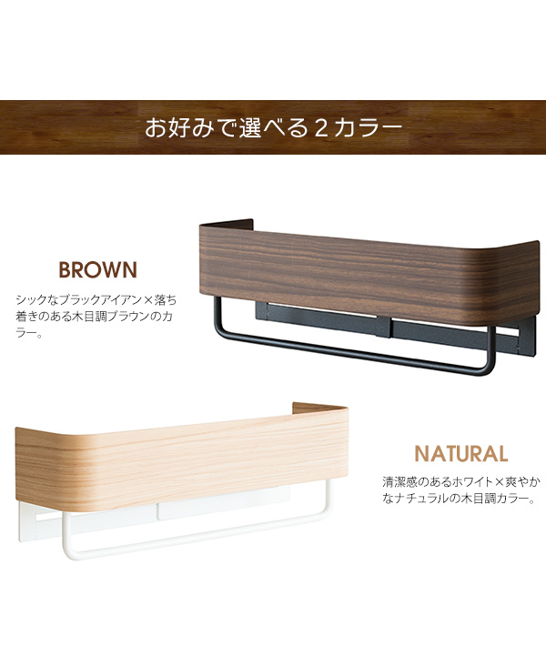タオルハンガー トイレ 洗面所 キッチン おしゃれ 木製 タオル掛け タオルハンガーラック 壁付け スリム 棚付き 幅25 ブラウン ナチュラル