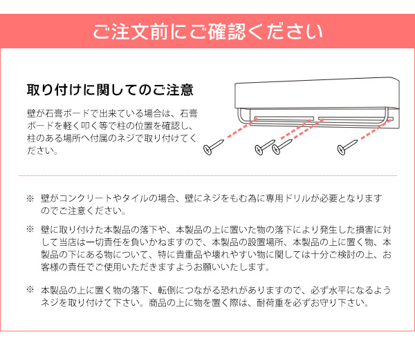 耐荷重 ハンガーバー:1kg、上棚:1kg