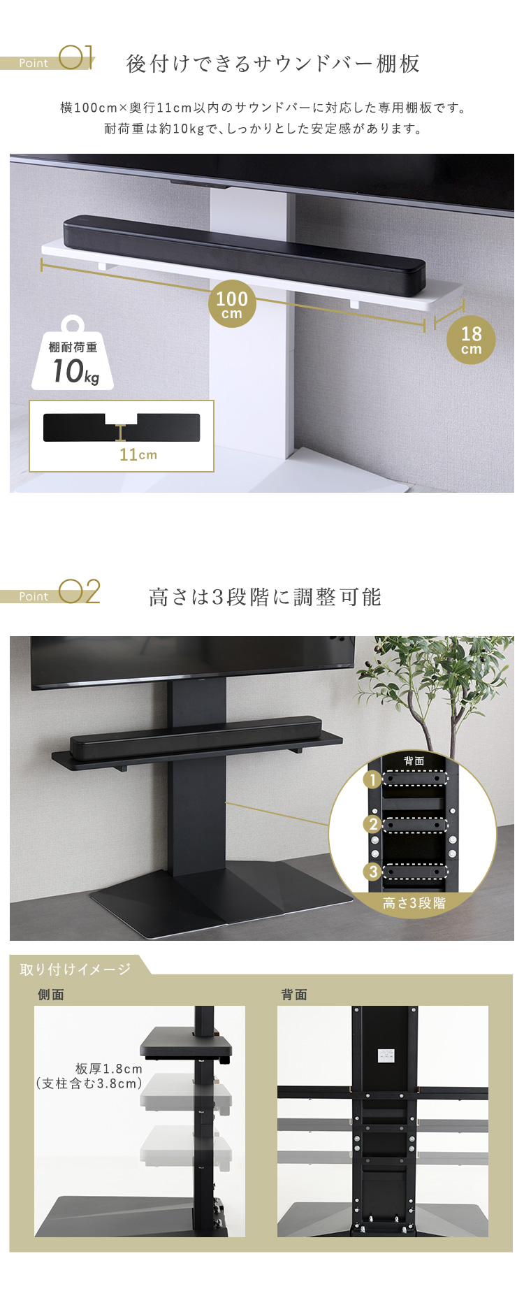 テレビスタンド 棚 サウンドバー棚板単品 テレビスタンド用棚 テレビスタンド用 ラック ブラック ホワイト