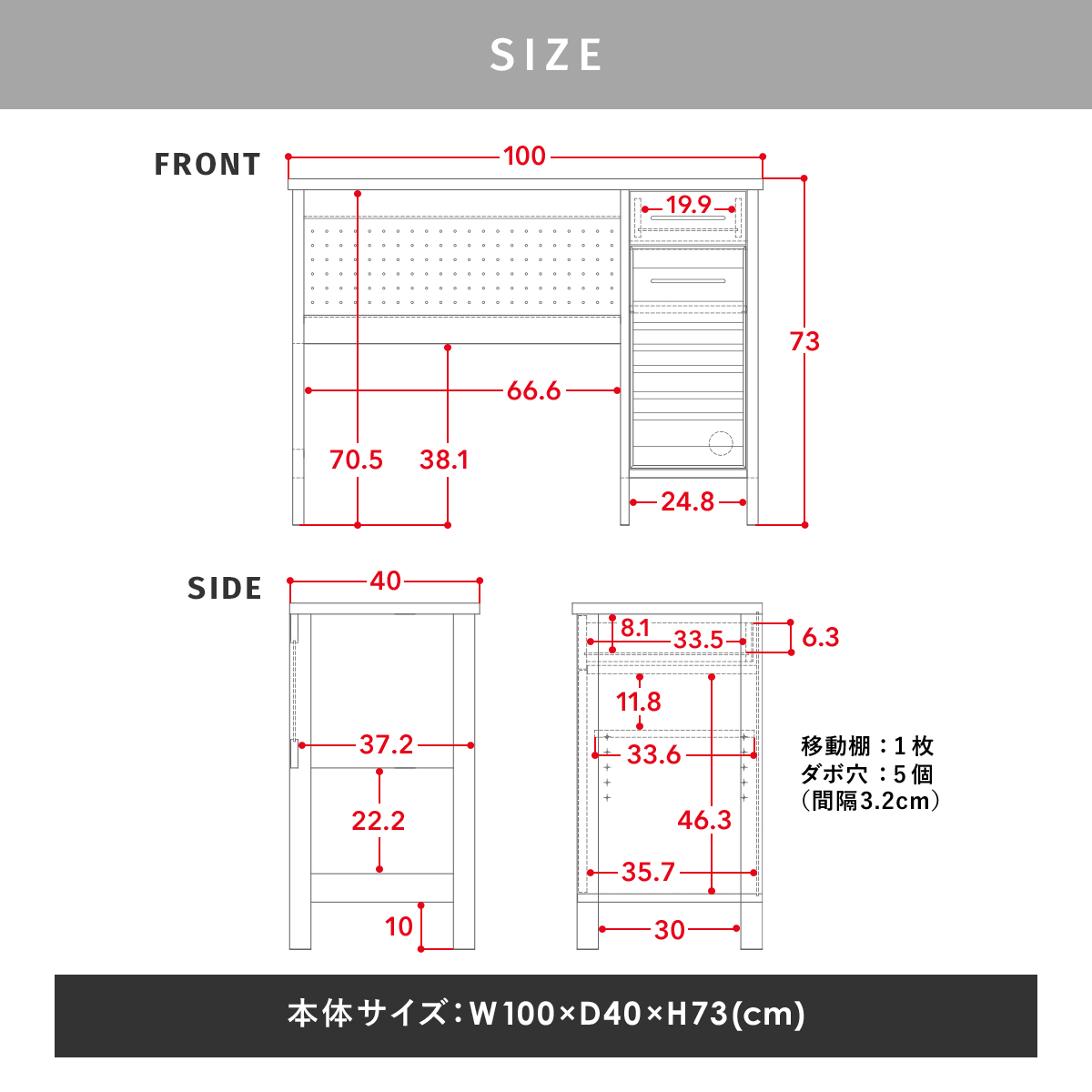 本体サイズ:幅1000×奥行400×高さ730mm