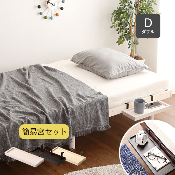 ダブルベッド フレーム 北欧 パイン材 宮セット 3段階 高さ調節 脚付き すのこベッド ホワイトウォッシュ ナチュラル ブラウン