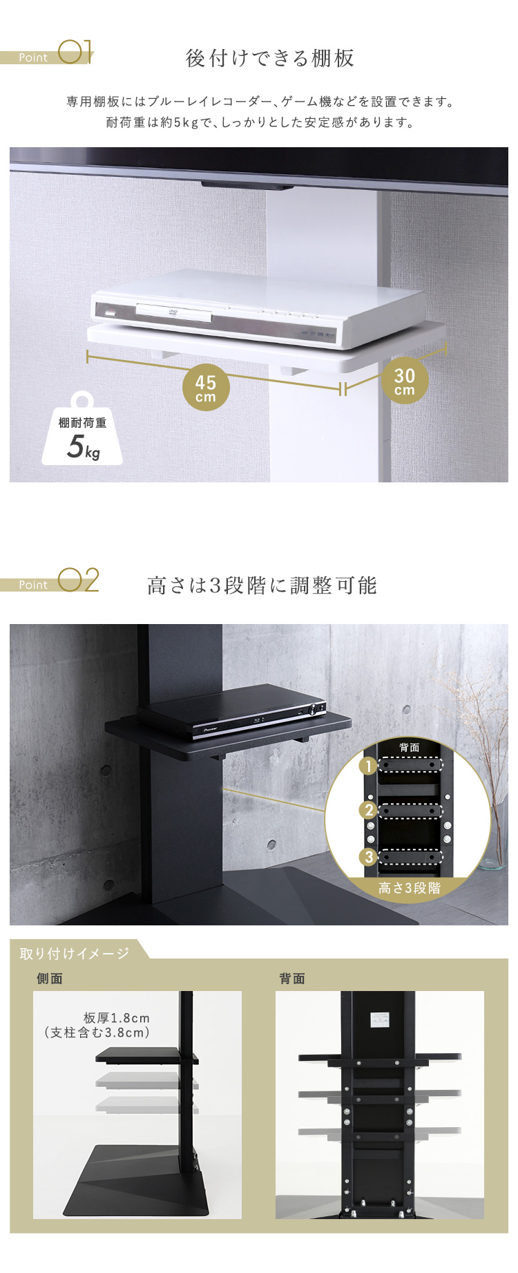 テレビスタンド 棚 専用棚板単品 テレビスタンド用棚 テレビスタンド用 ラック ブラック ホワイト