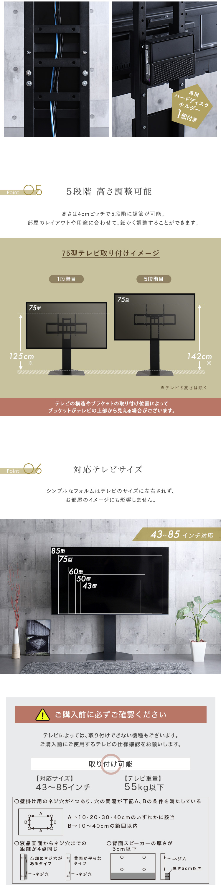 ・テレビ背面にネジ穴が4つあること