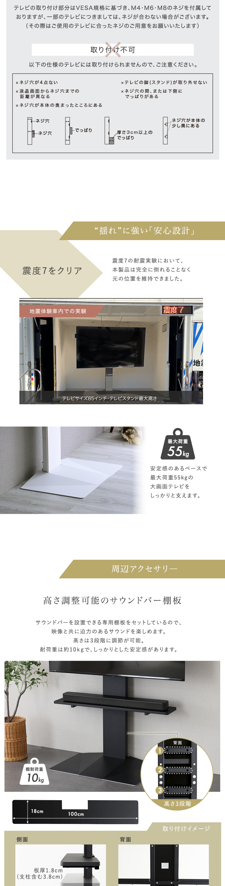 サウンドバー棚板:(約)10kg