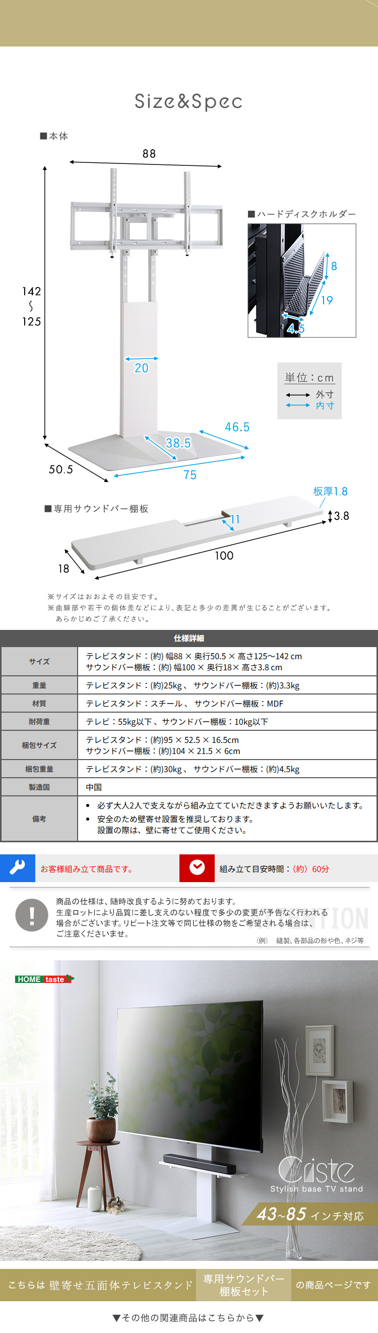 サウンドバー棚板:(約)4.5kg