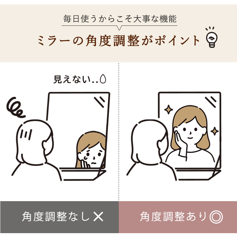 ミラーを閉じるとデスクとして使用可能なドレッサー。ミラーの角度調節ができるので顔が見やすい設計です。