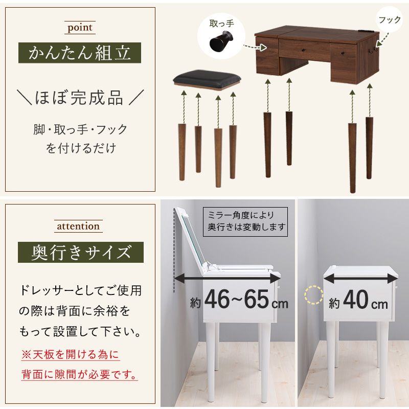 ドレッサー 収納 おしゃれ 北欧 化粧台 鏡台 ドレッサーデスク コンパクトドレッサー 鏡 木製 化粧鏡 デスク 机 椅子 メイクワゴン ホワイト ブラウン