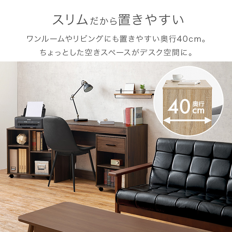 収納部分はキャスター付きなので、お部屋に合わせてレイアウトを変えたり、デスク下にコンパクトに収めたりできます。