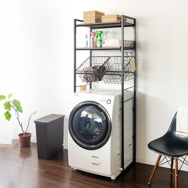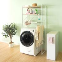 洗濯機周りに洗剤や洗濯バサミなど小物の収納にお困りの方にオススメのランドリーラック『Rizo(リソ)』。横幅65〜90cmの伸縮タイプでお家の洗濯機に合わせて設置が可能です。