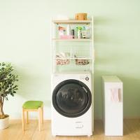 洗濯機上の空いたスペースを有効活用してスッキリ収納♪ニ段の可動棚は洗剤や入浴剤などの収納にピッタリです。