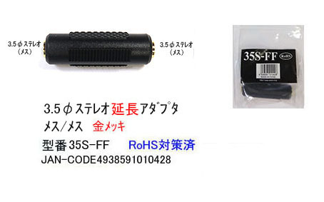 35S-FF 3.5mm ステレオミニプラグ延長コネクタ メス/メス