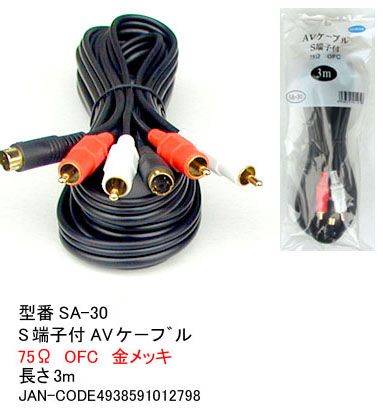 SA-30 S端子AVケーブル S端子x1/RCAx2(赤・白) 3m