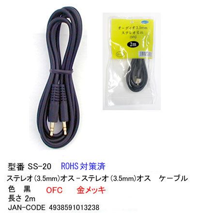 SS-20 3.5mmステレオケーブル (オス・オス) 金メッキ 2m
