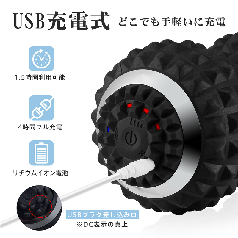 操作はすべてワンタッチで説明書いらず。1分間に最大6,000回の強力な3D振動で、「肩」やなど、コンディショニングツールとして使える筋膜リリース ボール。