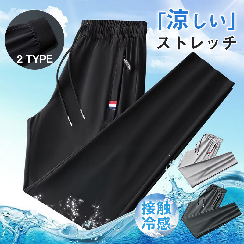 爆買 メンズチノパンツ ジョガーパンツ アイスシルク カジュアルパンツ ストレート 夏 ストレッチ 軽い ロングパンツ スポーツ 接触冷感 速乾薄め