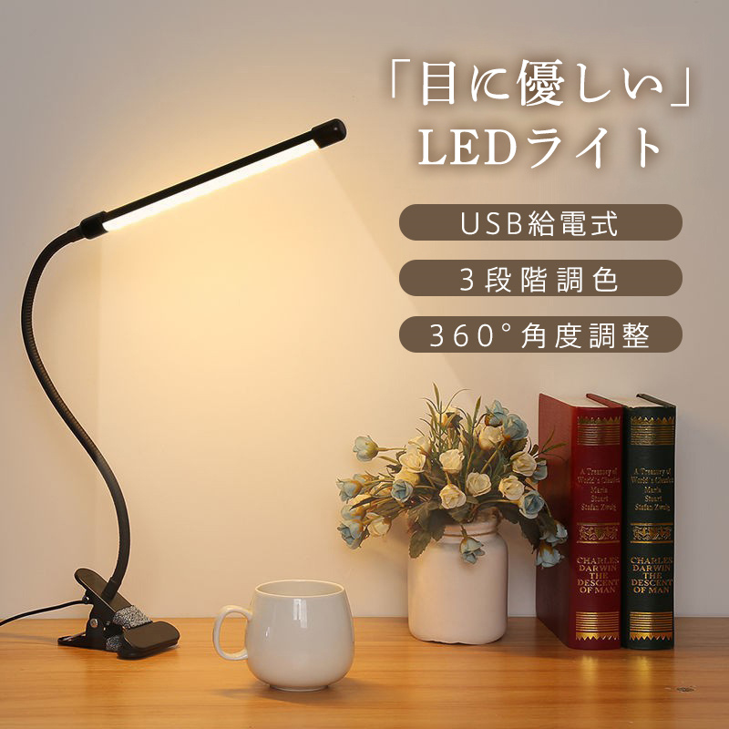 爆買 デスクライト おしゃれ LED クリップ クランプ 挟める 子供 明るい 卓上ライト 小型 オフィス 360度 回転 アーム 読書灯 ブックライト