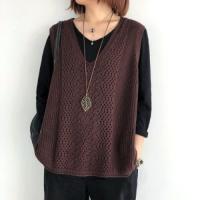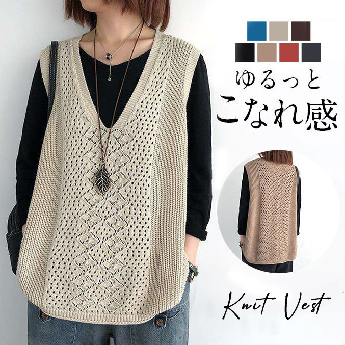 爆買 ニットベスト レディース チョッキ トップス Vネック 即納 薄手 ゆったり プルオーバー ベスト ジレー セーター 無地 重ね着 夏春秋 体型カバー 透かし編