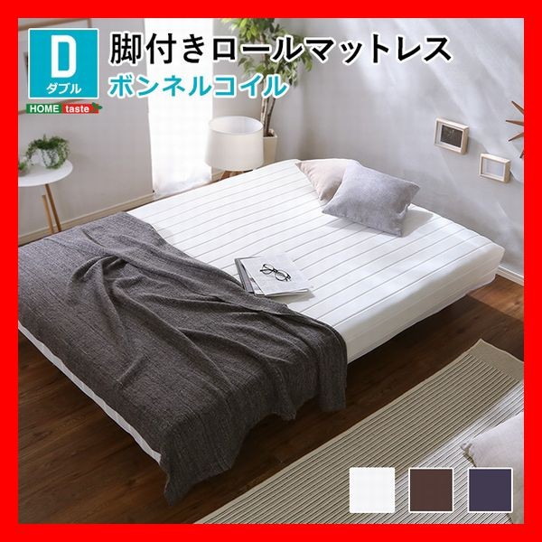 おしゃれな脚付きマットレスベッド ボンネルコイル ダブル ロール梱包で搬入簡単 すのこ構造 ソファにも ブラウン ネイビー ホワイト