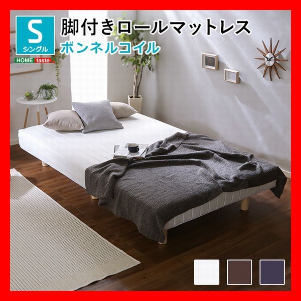 おしゃれな脚付きマットレスベッド ボンネルコイル シングル ロール梱包で搬入簡単 すのこ構造 ソファにも ブラウン ネイビー ホワイト