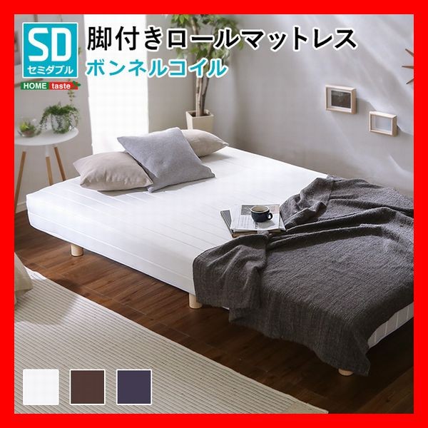 おしゃれな脚付きマットレスベッド ボンネルコイル セミダブル ロール梱包で搬入簡単 すのこ構造 ソファにも ブラウン ネイビー ホワイト