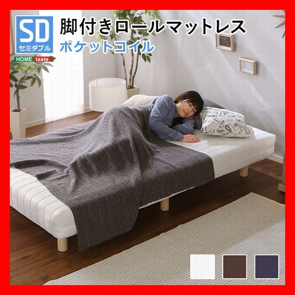 おしゃれな脚付きマットレスベッド ポケットコイル セミダブル ロール梱包で搬入簡単 すのこ構造 ソファにも ブラウン ネイビー ホワイト