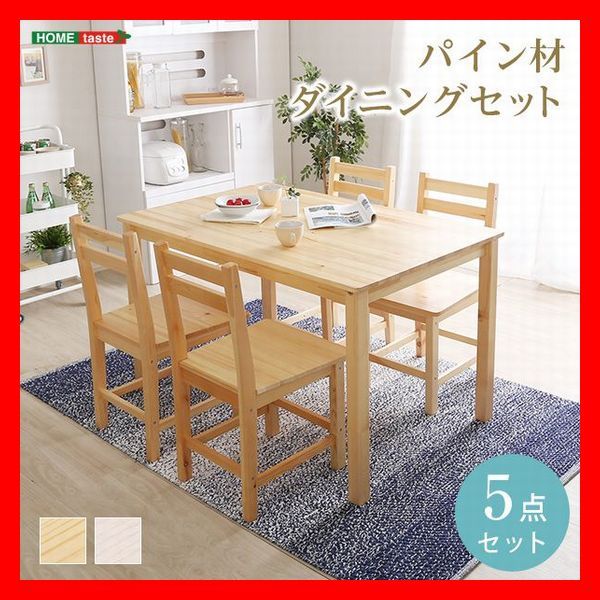 北欧テイスト ダイニング5点セット 天然木製 テーブル 椅子×4 4人用 ファミリー ナチュラル ホワイトウォッシュ