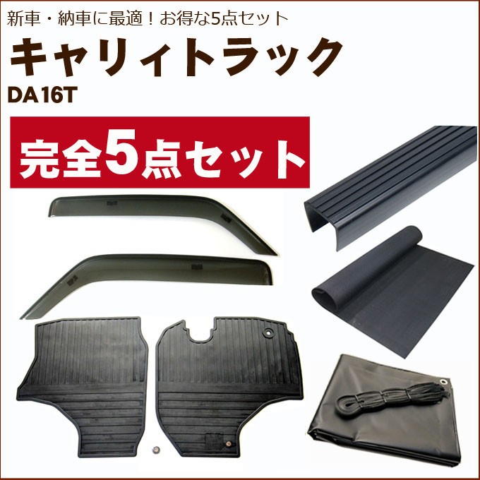 キャリイトラック DA16T バイザー&ゴムマット&荷台マット&ゲートプロテクター&荷台カバー(黒)