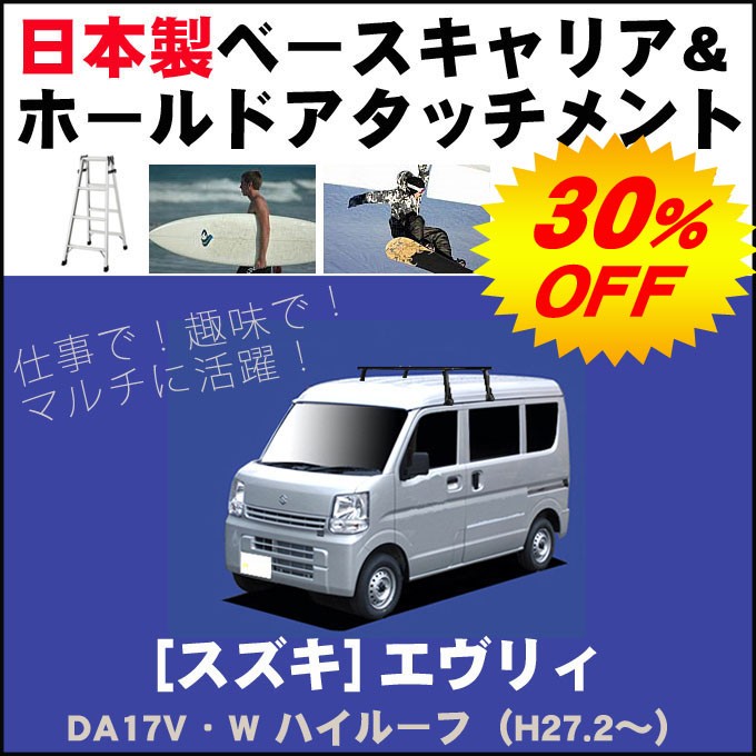 スズキ エブリィ/エブリー DA17V/W ハイルーフ ベースキャリア&ホールドアタッチメント 用途多彩/脚立/スノボ/サーフボード