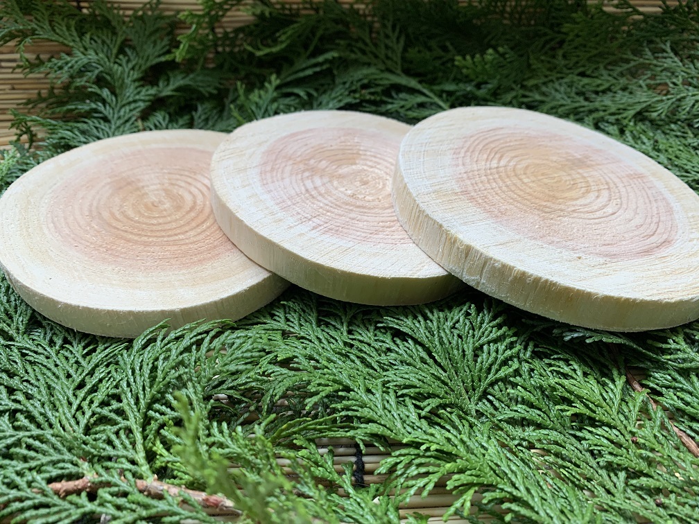 丹波ヒノキ 皮剥ぎ 直径10〜12cm 厚さ1〜1.5cm 3枚セット