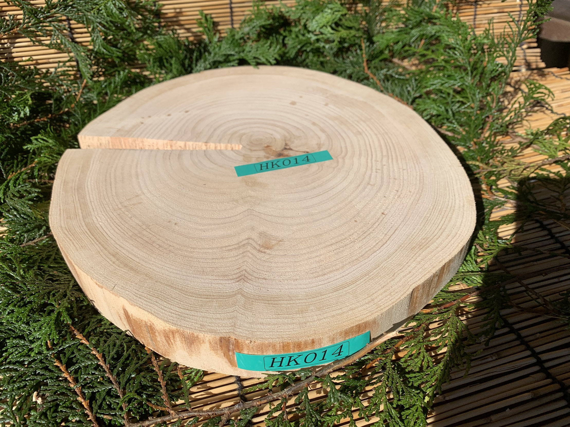 【値下げ】丹波ヒノキ 輪切り 皮剥ぎ 直径約28cm 厚さ約3.3cm