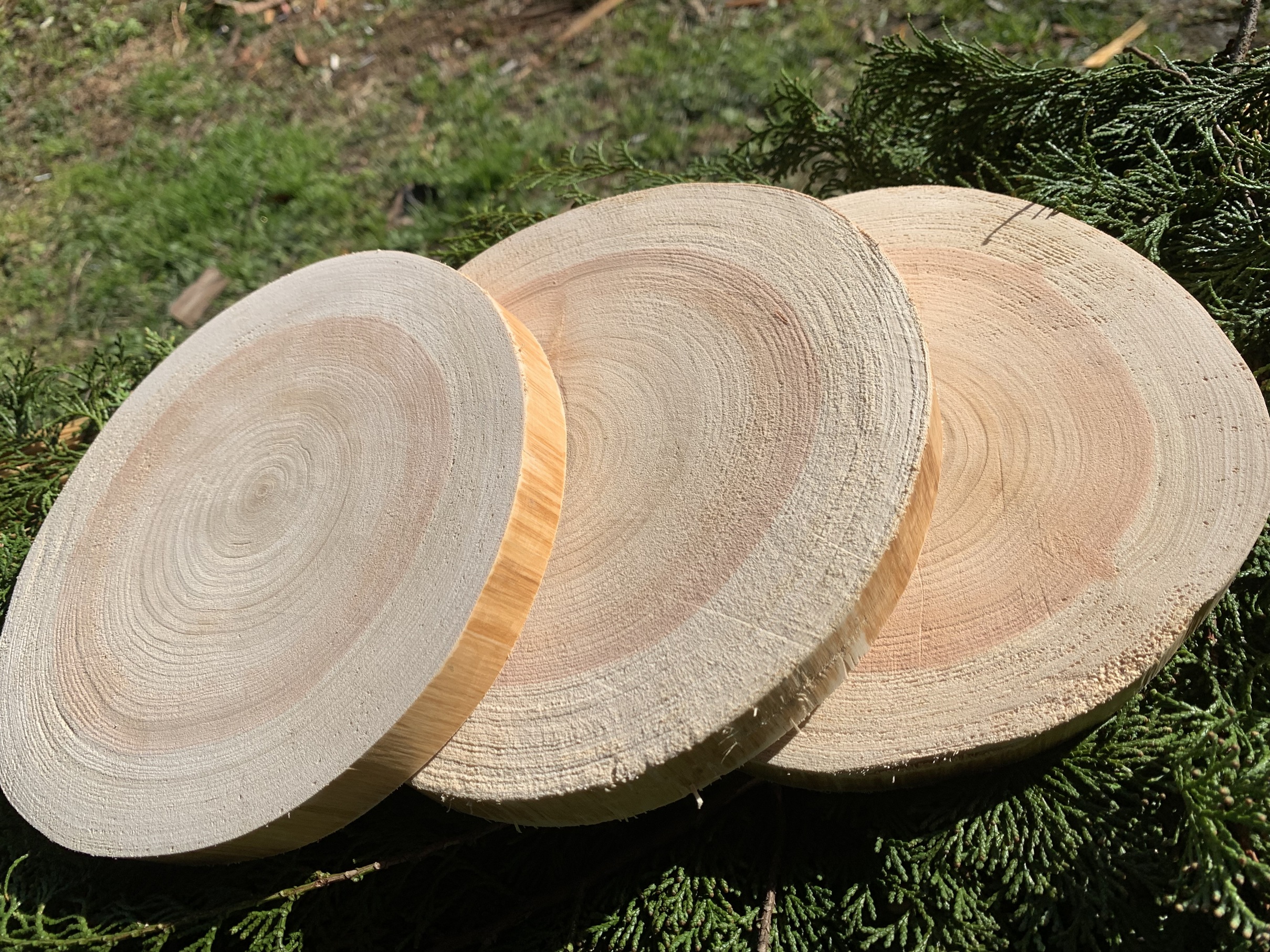丹波ヒノキ 薄赤色 皮剥ぎ 直径約20cm 厚さ約2cm 3枚セット