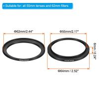 ・仕様: カラー: ブラック; 材質: アルミニウム合金; 適用対象: すべての55 レンズと6 フィルター; 全体のサイズ: 64x6 直径H; オスネジ: 55 ; メスネジ: 6 /.44インチ; パッケージリスト: xフィルターアダプターステップアップリング