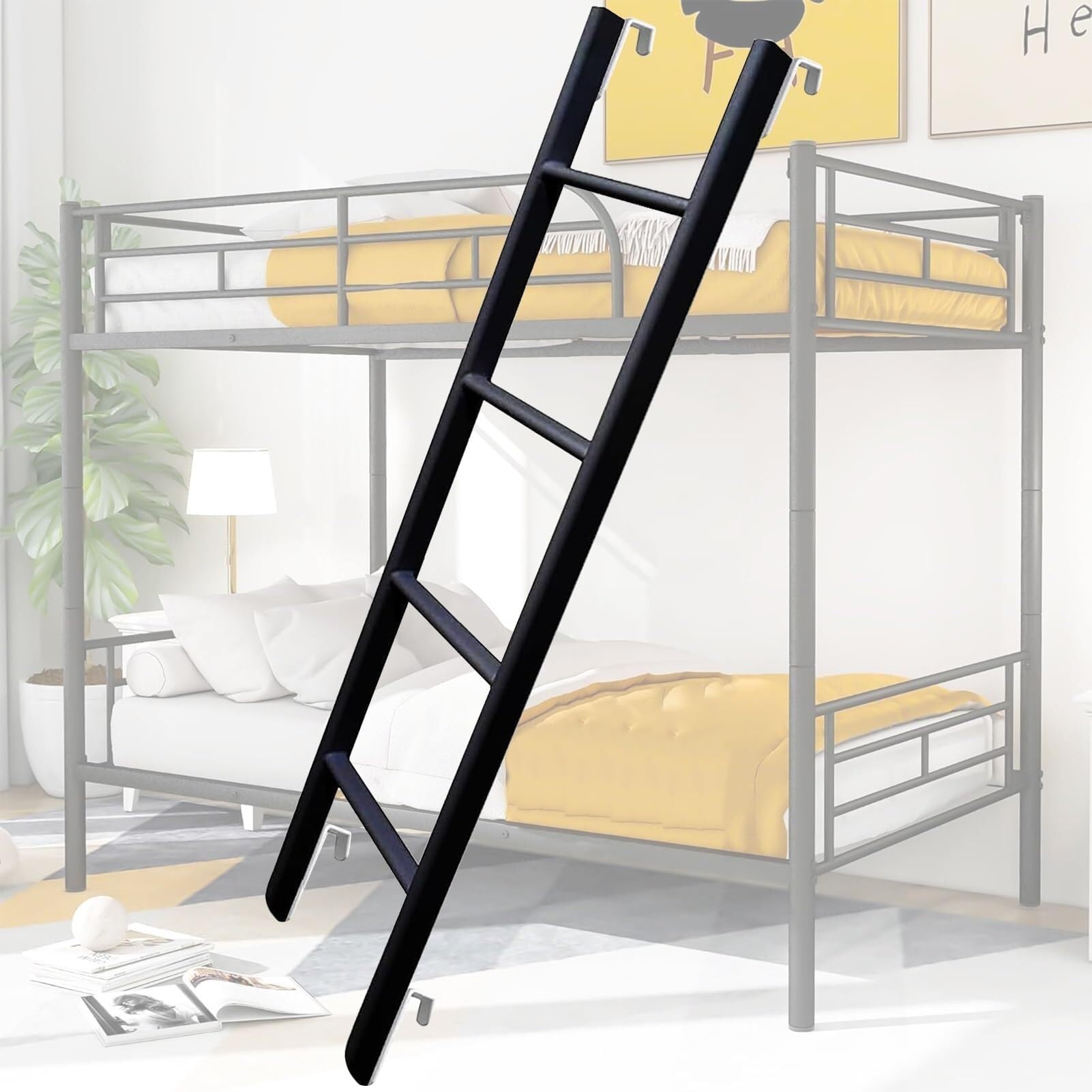 Metal Bunk Bed Ladder with Hooks, Adjustable Hook on Ladder for Loft RV Dorm, 331lbs Load(150cm(59"))