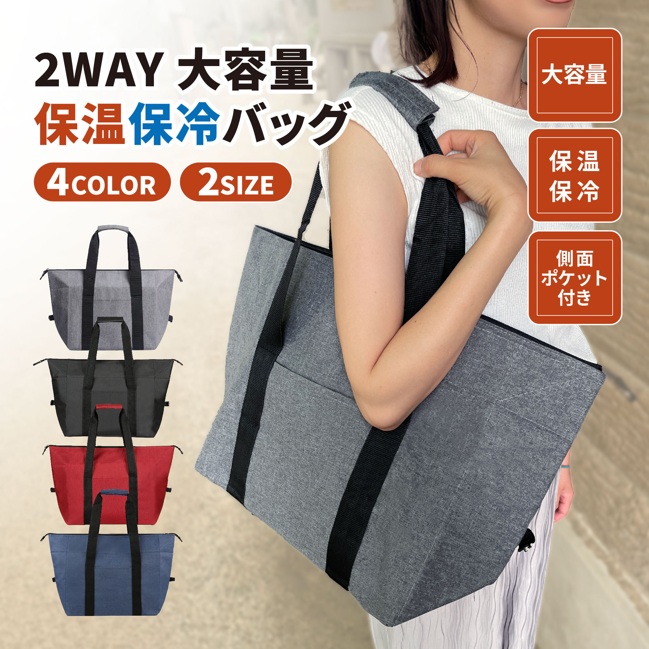 持ち手カバーが付いていて手が痛くなりにくい、保温保冷バッグです。