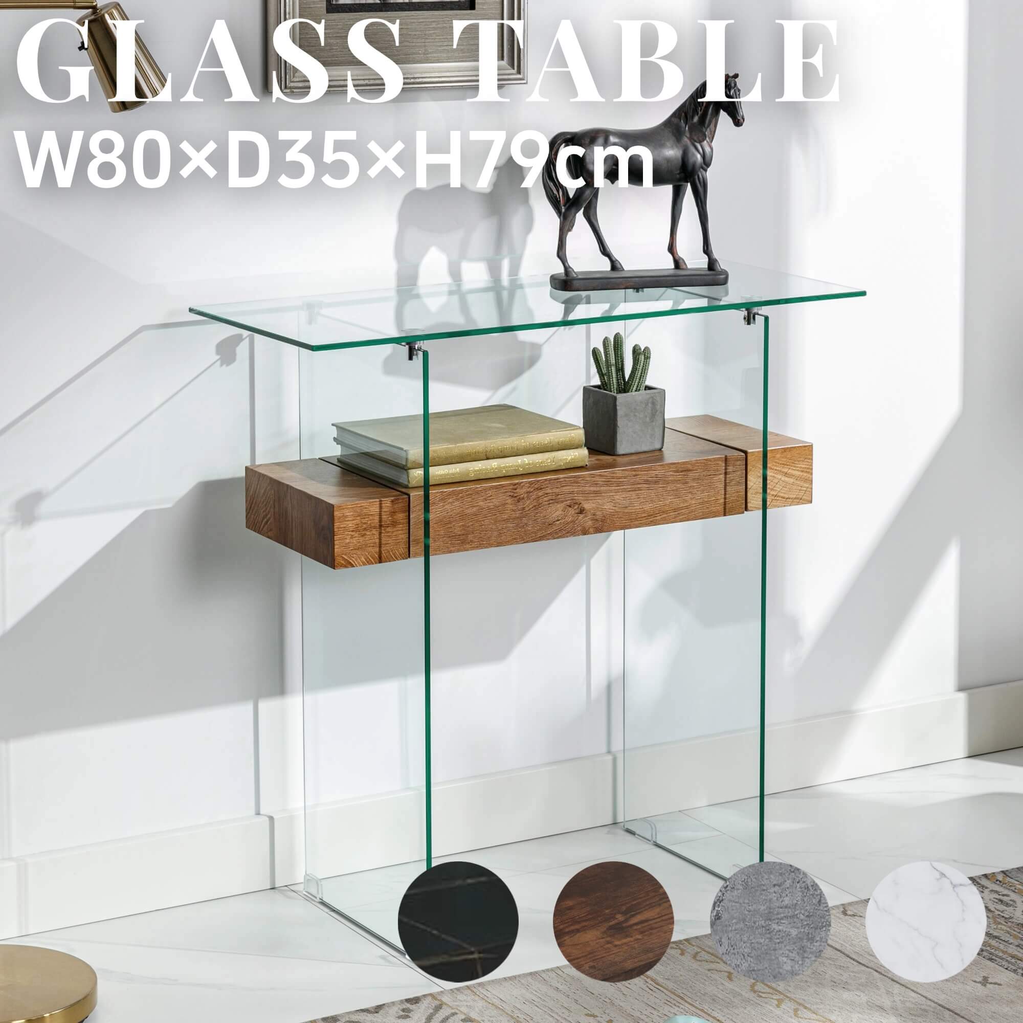 Newvalueガラスコンソールテーブル 収納付き モダンソファテーブル 玄関テーブル TVテーブル ビュッフェテーブル 省スペース リビングテーブル幅80cm