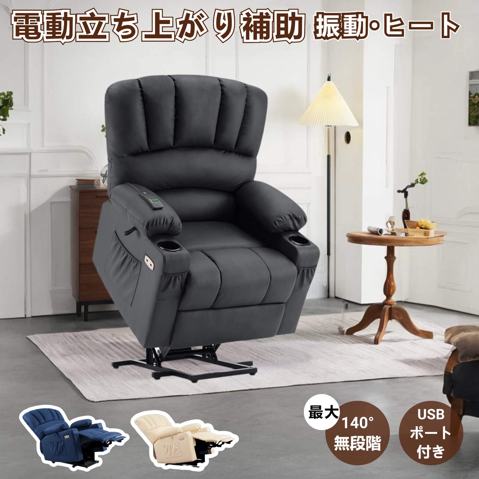 MCombo 電動リクライニングチェア ソファー ソファ 起立支援 パワーリフト 振動・ヒート 映画鑑賞チェア 一人ソファ ふかふか 前後傾き防止鉄板 フェイクレザー