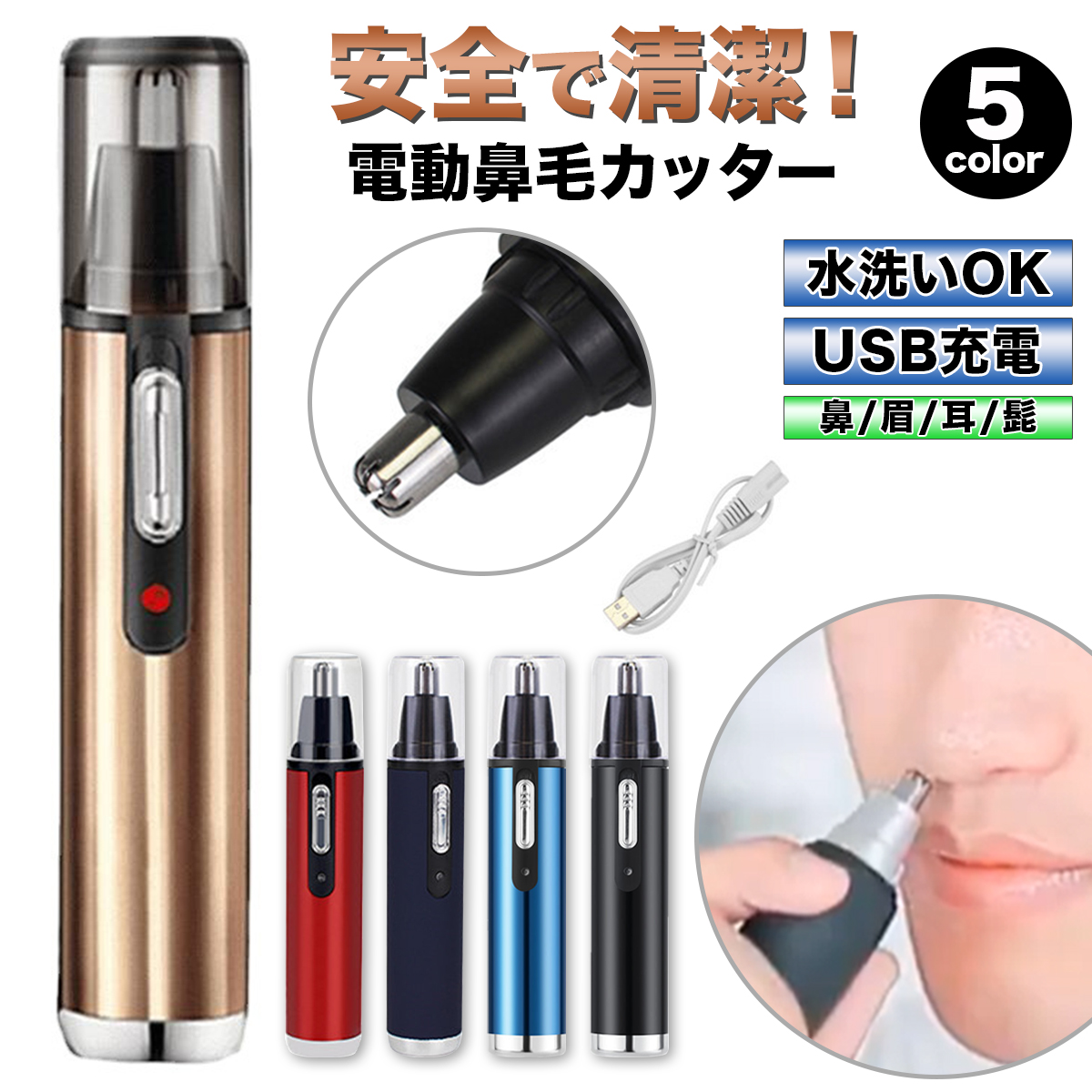 鼻毛カッター 充電式 USB 女性用 耳毛カッター 男性用 電動 USB充電 レディース メンズ 水洗い コンパクト 持ち運び