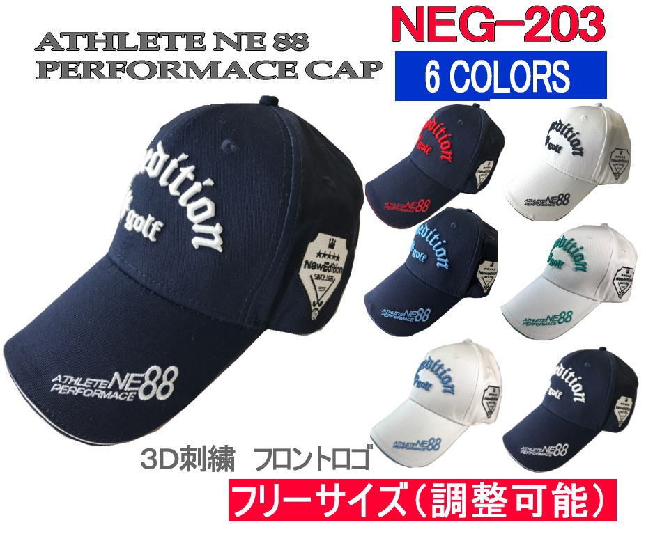| ゴルフ キャップ 3D刺繍アスリート ワッペン コットン綿 キャップ フリーサイズ 【NewEdition GOLF?】ニューエディションゴルフ NEG-203 |
