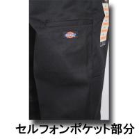 ●DICKIES (ディッキーズ)「アメリカ・テキサスで誕生したブランド。もともと作業着として作られて いるので機能性、耐久性共に抜群の着用感。今ではメンズ・レディースに とらわれず、世界中で愛されている。●ダブルニーの名前の通り、ヒザ部分の生地が二重に補強されたなワークパンツ。ヒザ部分は補強だけでなく、デザイン性も合わせ持ってます。●右側のバックポケットの下には、携帯電話を入れるセルフォンポケットが付いてます。全体的に太めな作りになってます。
