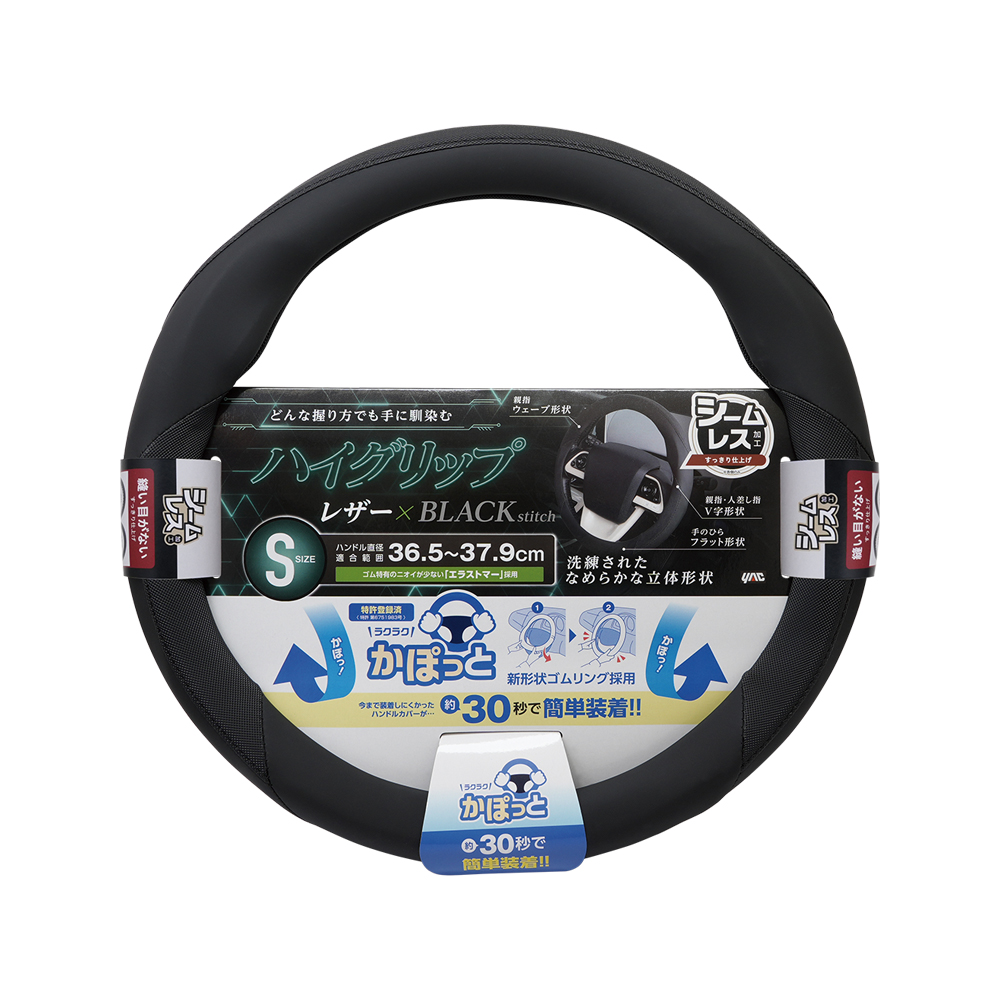 槌屋ヤック かぽっとハンドルカバー S ハイグリップ&シームレス レザー調xブラックステッチ仕様 ハンドル直径36.5?37.9cm KC-K206