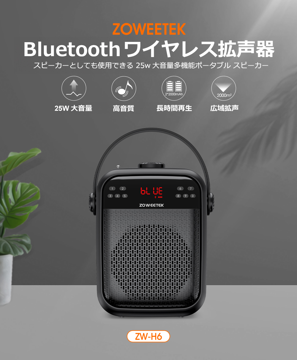 ZOWEETEK ハンズフリー拡声器 ポータブル スピーカー 音楽再生可能 ワイヤレスマイク付き ACアダプタ付属