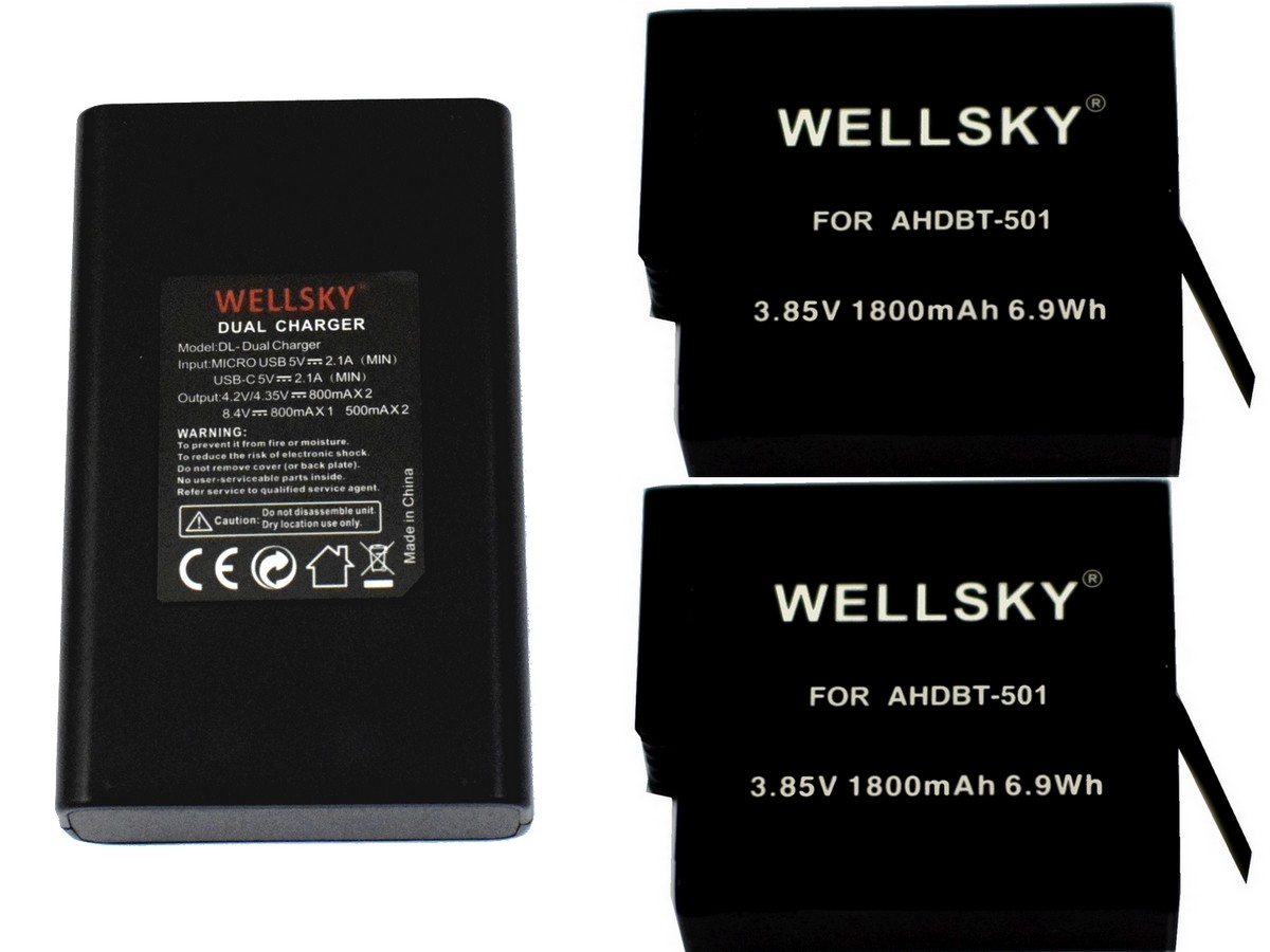 AHDBT-501 AHDBT-801 互換バッテリー 2個 + デュアル USB 急速 互換充電器 バッテリーチャージャー 1個 [ 3点セット ] GoPro ゴープロ