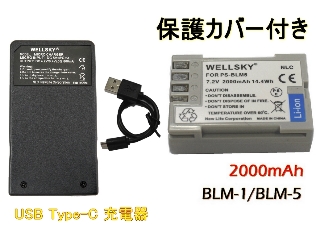 BLM-5 BLM-1 互換バッテリー 1個 + BCM-1 BCM-2 BCM-5 超軽量 USB Type C 互換充電器 バッテリーチャージャー 1個 端子保護カバー付