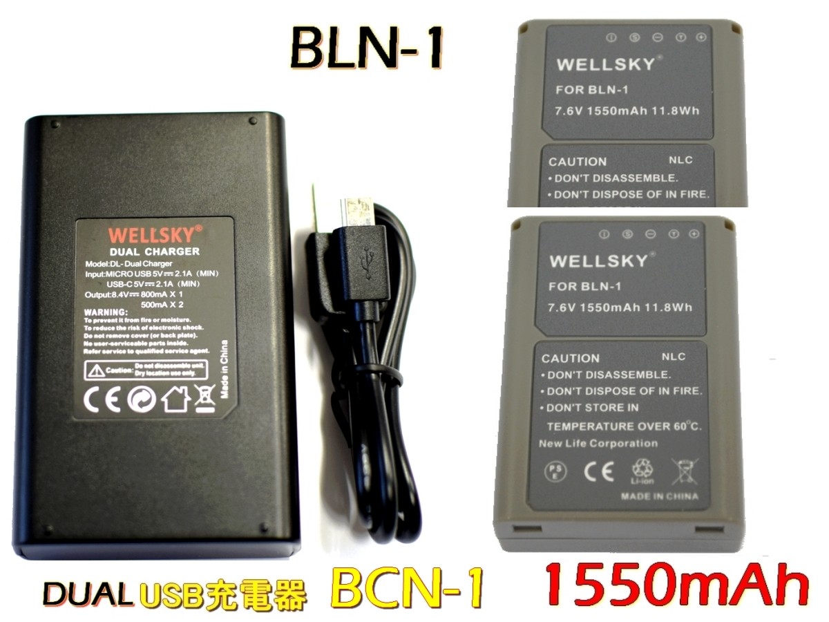 BLN-1 互換バッテリー 1550mAh 2個 & BCN-1 [ デュアル ] USB Type C 急速 互換充電器 バッテリーチャージャー1個 OLYMPUS オリンパス