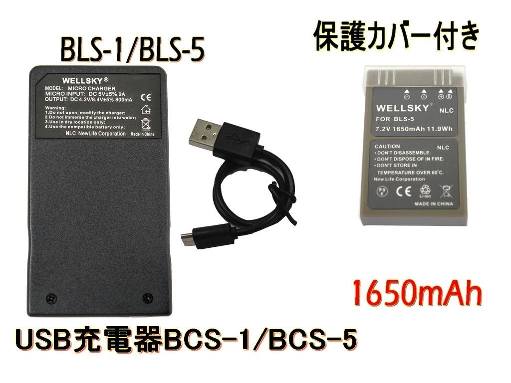 BLS-50 BLS-5 BLS-1 互換バッテリー 1個 & BCS-5 BCS-1 超軽量 USB 急速 互換充電器 バッテリーチャージャー 1個 OLYMPUS オリンパス