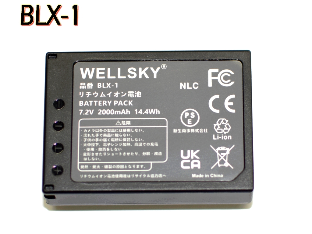 互換可能バッテリー オリンパス OLYMPUS BLX-1 電圧 : 7.2V 実稼働容量 : 2000mAh 1個