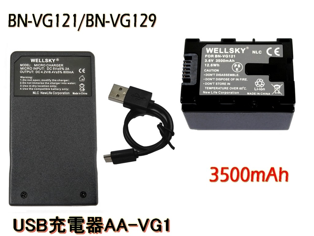 互換可能バッテリー: Victor BN-VG121 / BN-VG129 電圧: 3.6V 容量: 3500mAh 1個