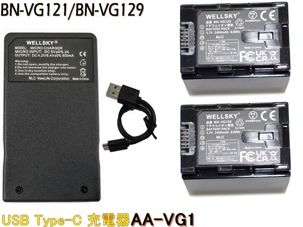 BN-VG129 BN-VG121 互換バッテリー 2個 + AA-VG1 [ 超軽量 ] USB Type-C 互換充電器 バッテリーチャージャー 1個