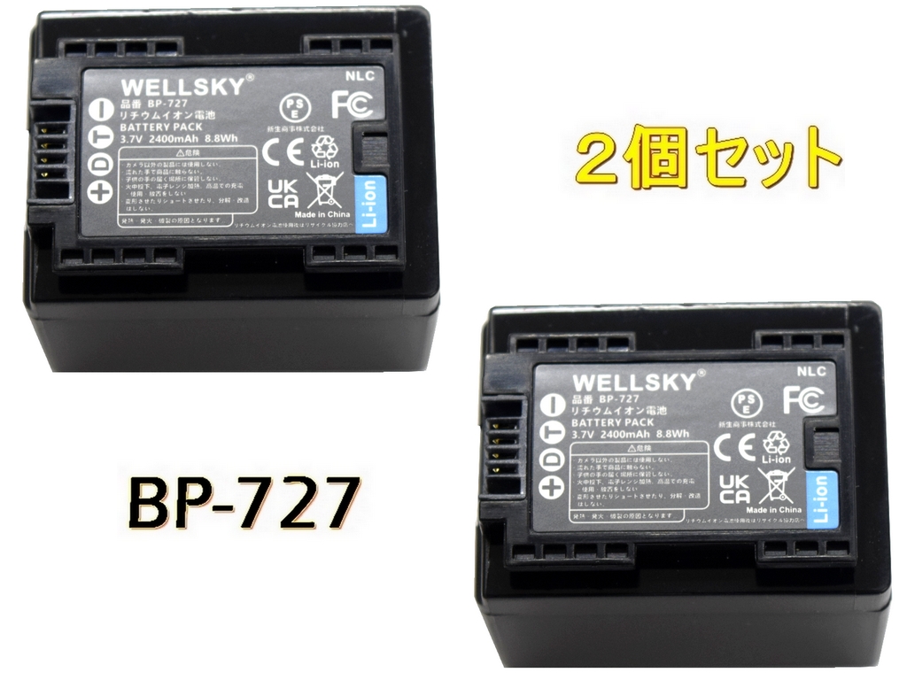 BP-727 2個 互換バッテリー [ 純正充電器で充電可能 残量表示可能 純正品と同じよう使用可能 ] CANON キヤノン