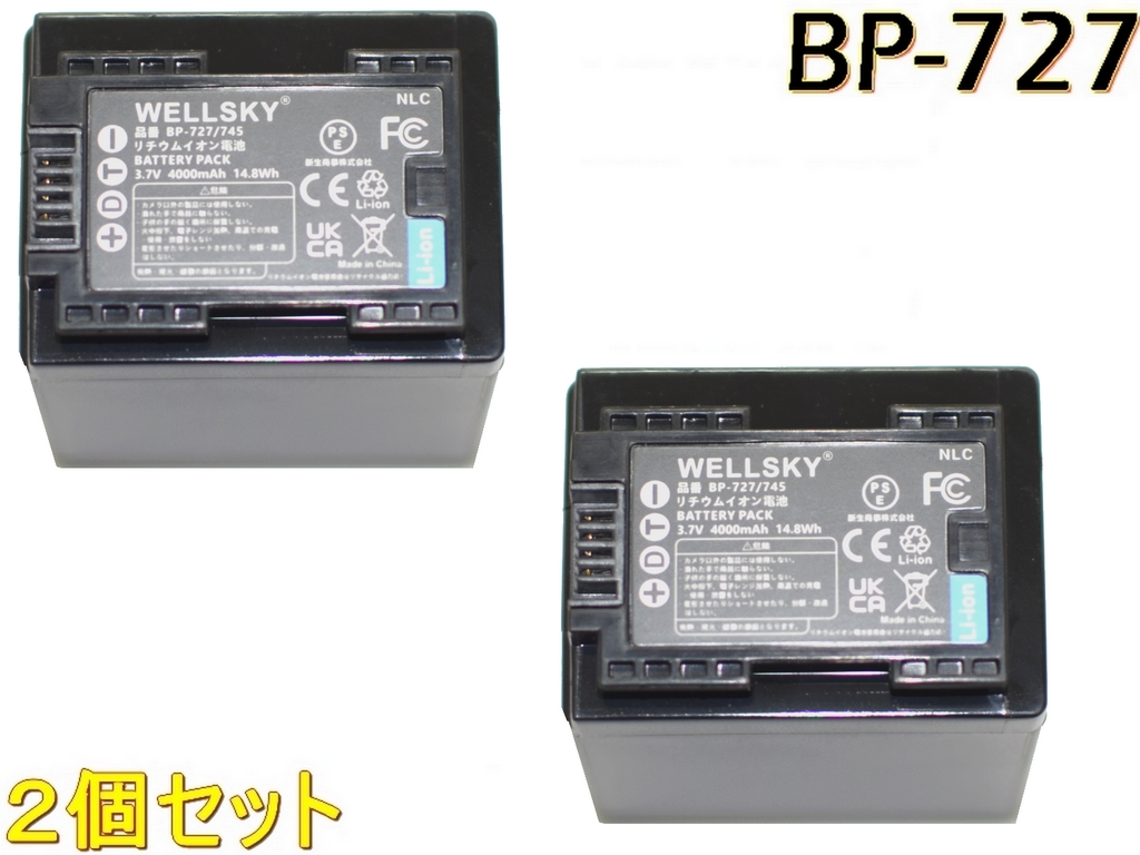 BP-727 2個 互換バッテリー 4000mAh [ 純正充電器で充電可能 残量表示可能 純正品と同じよう使用可能 ] CANON キヤノン